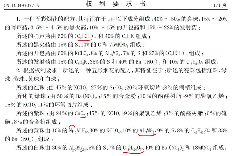 Давайте мы просто взглянем на первую страницу "патента", который так боялся раскрыть автор данного топика. Патент - CN103497077A (Состав красочного фейерверка). Специально потратил несколько минут для поиска, чтобы понять, что там такого используют с фенилацетилинидом калия. А там оказывается есть и более "интересные" и "существующие" соединения. По тому, как пишет автор патента формулы, да еще и вводит новый 119-ый элемент (Ng), несуществующий полимер (C2HCl)n , пероксид меди (нестабильный, который с добавками будет еще более нестабильным) + нелепости типа AL и MG, пишет прописными буквами, а Ba и Cu - как полагается. Что я смог расшифровать, зная немного пиротехнические составы: (C2HCl)n - теоретически можно написать этот полимер с двойной связью C=C, на практике его нет, скорее это "зашифрованный" ПВХ (C2H3Cl)n или ХПВХ (зелёная цветообразующая добавка); CuO2 - скорее всего просто CuO (цветообразующая добавка для синего или фиолетового цвета); NgAlF6 - NaAlF6 - криолит (желтоокрашивающая добавка + яркость); Сплавы в виде Al3Mg4 и Al3Mg24 - у нас такие сплавы не продаются, есть ПАМ-4,5, АМД-10,50М и.т.д. Там примерно 50/50, но можно добить чистым порошком магния или алюминия до любого соотношения; Все эти компоненты доступны, продаются на пирохобби или на озоне для физлица. И наконец - C48H420OT - скорее всего какое-то органическое доступное горючее типа канифоли, шеллака, смолы и.т.д. Учитывая предыдущие "зашифровки", здесь можно только гадать. А лучше забить. Но я рад, что это даже не патент, а заявка от 2013 года, которая и осталась в статусе заявки, что говорит о том, что у китайцев есть хоть какой-то "фильтр". Изучив предыдущие сообщения автора топика, я понял, что он хочет поиграться с энергонасыщенными материалами, но вместо хотя бы изучения базовой химии, почему-то играется с ИИ и находит какие-то шизопатенты, не понимая, что это бред, и еще просит форум расшифровать этот бред без контекста (нормальный химик глянет на первую страницу патента и закроет от греха подальше). Ну а если хочется так уж очень с этим поиграться, открой готовые решения - "Пиросправка" (2012, 6 изд.). Там наиболее доступно и понятно описываются по категориям составы. Извини, но за такое ВПК в Китае бы расстреляли Ну какие вот конкуренты - все эти пиротехнические составы, фейерверки давно уже известны и отработаны, используется уже известный ряд доступных окислителей и горючих, никто не будет совать дорогущую или нестабильную экзотику. Особенно фенилацетилинид калия, он никому не сдался с высокой чувствительностью и дороговизной даже для военных целей.2 балла