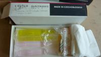 Продам за ненадобностью электроды чешский 6 или 7 штук, в основном селективные, ЕМНИП свинец, фтор, калий, вроде есть еще каломельный сравнения. Производства 80-х годов прошлого века. У всех разъемы "банана плаг". По виду хорошие. Дополнительно есть один рН электрод Шотт Блю Лайн рН12 - хороший современный электрод для водных сред. Б/У, но вид имеет нормальный, внутри плещется КСl 3 молярный (то есть не высох). Разъем BNC. Дополнительно продам шоттовский же комплект буферов для калибровки рН электродов с рН4 и рН7 в ампулах, готовые к употреблению (всего семь упаковок по шесть ампул в каждой). Если кто заберет все оптом - добавлю раствор КСl 3 молярный в запаянном пластике для заполнения электродов.