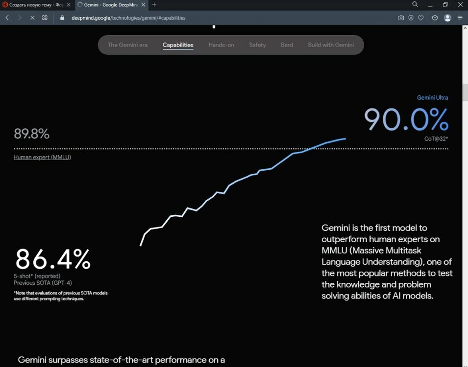 На сайте известной компании "Дипмайнд", специализирующейся на разработке ИИ, представлены результаты тестов, согласно которым новый ИИ Gemini уделывает эксперта-человека и GPT-4 по показателю общего интеллекта.