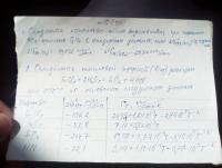 1)Теплота сгорания c2h5oh равна -1367,7 кдж. Найдите теплоту образования этилового спирта ,если пригорении образуются углекислый газ и вода в жидком состоянии? 2)вычислите тепловой эффект реакции при постоянном давлении при 25градусах С 2 NH4Cl+H2SO4ж= (NH4)2SO4т+2HClт 3)при нейтрализации 6,86 серной кислоты едким натром до образования гидросульфата натрия выделяется 4,32 кдж теплоты,а при нейтрализации этого же количества теплоты до ульфата натрия выделяется 9,26 кдж теплоты . Вычислите тепловой эффект взаимодействия гидроульфата натрия с едким натром. 4)Определите теплоты образования при постоянном объеме и 25 °С, если известна теплота образования при постоянном давлении для следующих реакций: а) Н2 + 1/2O2 = Н2О(Г), ∆H10 = - 242 кДж; б) 1/2N2 + 3/2Н2 =NН3, ∆H20 = - 46,2 кДж; в) 1/2H2 + 1/2F2 = HF, ∆H30= - 268,8 кДж; г) 1/2N2 + О2 = NО2, ∆H40 = 33,87 кДж. 5)Вычислите теплоту образования серного ангидрида, исходя из следующих данных: РbО + Sромб + 3/2О2 = PbSО4, ΔH10 = - 693,3 кДж; РbО + H2SO4·5Н2О = PbSO4 + 6Н2О, ΔH20 = - 97,55 кДж; SO3 + 5Н2О = H2SО4·5Н2О, ΔH30 = - 172,1 кДж. -