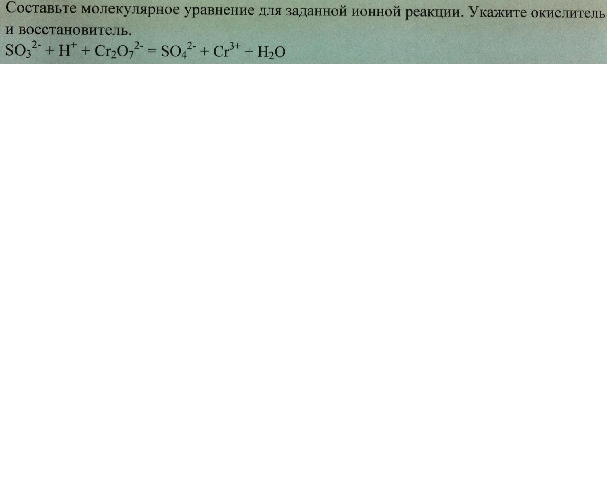 Составьте молекулярное уравнение для заданной ионной реакции,укажите окислитель и восстановитель