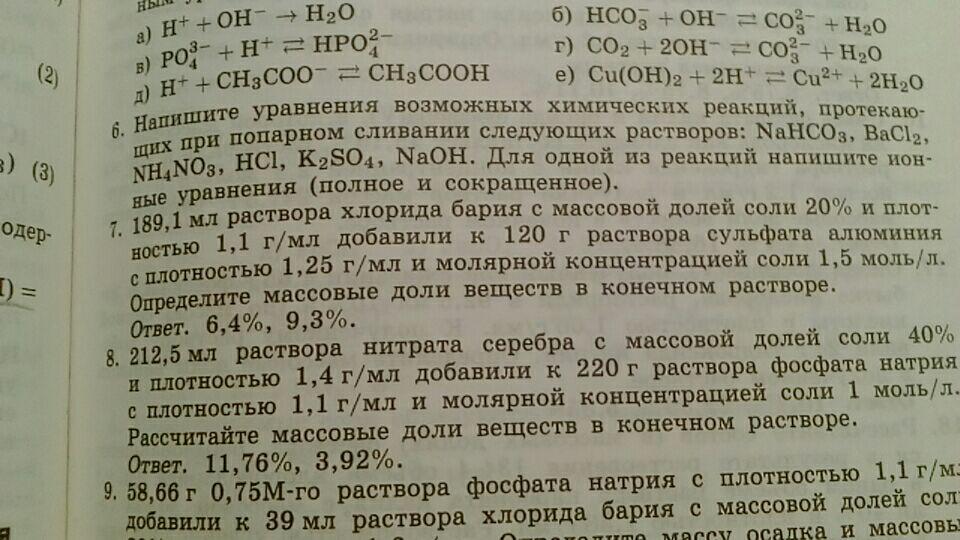 189,1 мл раствора хлорида бария с массовой долей 20% и плотностью 1,1 г/мл добавили к 120 г раствора сульфата алюминия с плотностью 1,25 г/мл и молярной концентрацией соли 1,5 моль/л.