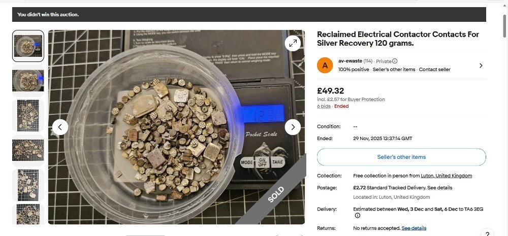 Контакты серебряные ушли за копейки почему-то, 26.76£ за 60 грамм, чистые!!