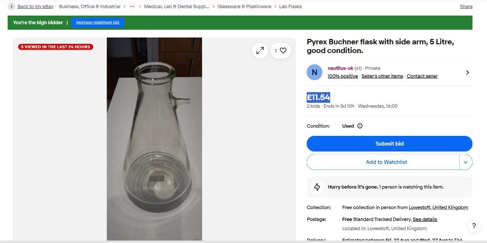 Я выиграл лот, я считаю это очень дёшево для 5 литрового Бунзена £11.54 с доставкой на дом.