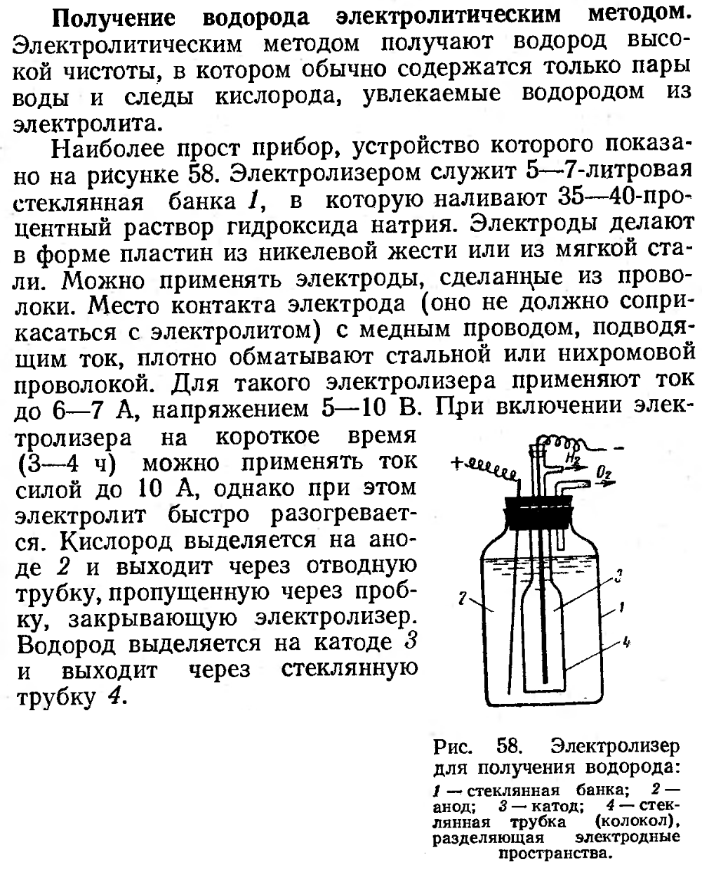 Когда-то я из гумна делал электролизёр приблизительно такой конструкции, как на рисунке, но только поменьше раза в два. Подцеплял к понижающему низковольтному трансформатору через мост на диодах Д242 и самодельный реостат, собранный из низкоомных проволочных резисторов типа ПЭВ и переключателя на десяток позиций. Все компоненты схемы были б/у, я набрал их на работе у киповцев в ящике для хлама. Никакими вольтметрами-амперметрами не пользовался за неимением, а выделение водорода и кислорода регулировал визуально реостатом, переключая ступени. При работе не замечал, чтобы что-то розовело, правда, сосуд был не из бесцветного стекла. Потом я его на какое-то время забросил, а когда он мне понадобился, то обнаружил, что электроды начали корродировать и на дно выпала ржа.