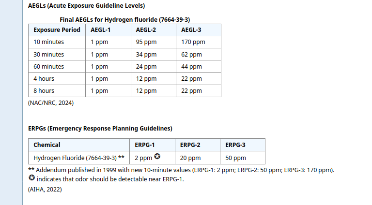 Противоречивые данные по токсичности фторовдорода. В книге вредные вещества промышленности ПДК фтороводорода на порядок ниже чем хлороводорода (0.5 мг на м3 против 5 мг на м3 ), те там фтороводород идет как серьезный ядовитый газ с поледствиями.