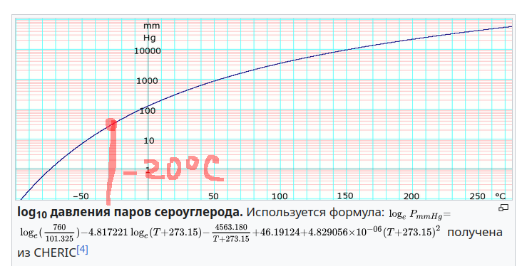 Я правильно понимаю ваше рассуждение о высоком давлении пара что для аналогичного для воды разрежения(при ну 25 град)( 25 мм рт столба) нужно сероуглерод охладить до примерно -25 градусов по цельсию?