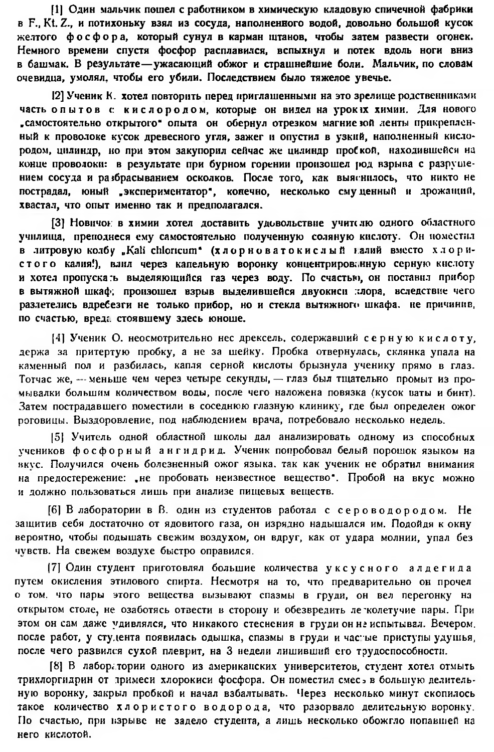 Однако начинать вникать в тему всегда лучше с простых вещей, а не с разных там морфолинов и аманитинов. А посему мне пришла мысль начать публикацию здесь серии постов с описанием несчастных случаев и прочих нелепых происшествий, содранных из книги немецких авторов за 1926 год. Для опытных химиков этот материал может показаться анекдотичным, но начинающим юным химикам и конченым каловарам он наверняка пригодится, особенно если читать его перед сном.