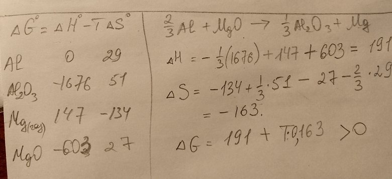 Может я где-то ошибку делаю.., но энергия Гиббса все равно получается положительная, даже если учесть, что магний газообразный образуется.