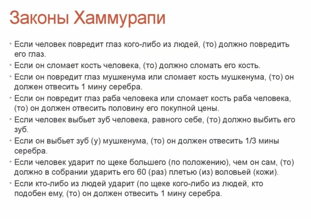 "......§ 1) Если человек клятвенно обвинил человека, бросив на него обвинение в убийстве, но не доказал его, то обвинитель его должен быть убит.