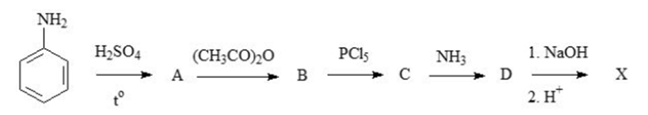 Анилин - п-аминобензолсульфокислота - N-ацетил-п-аминобензолсульфокислота - N-ацетил-п-аминобензолсульфохлорид - N-ацетилсульфаниламид - сульфаниламид
