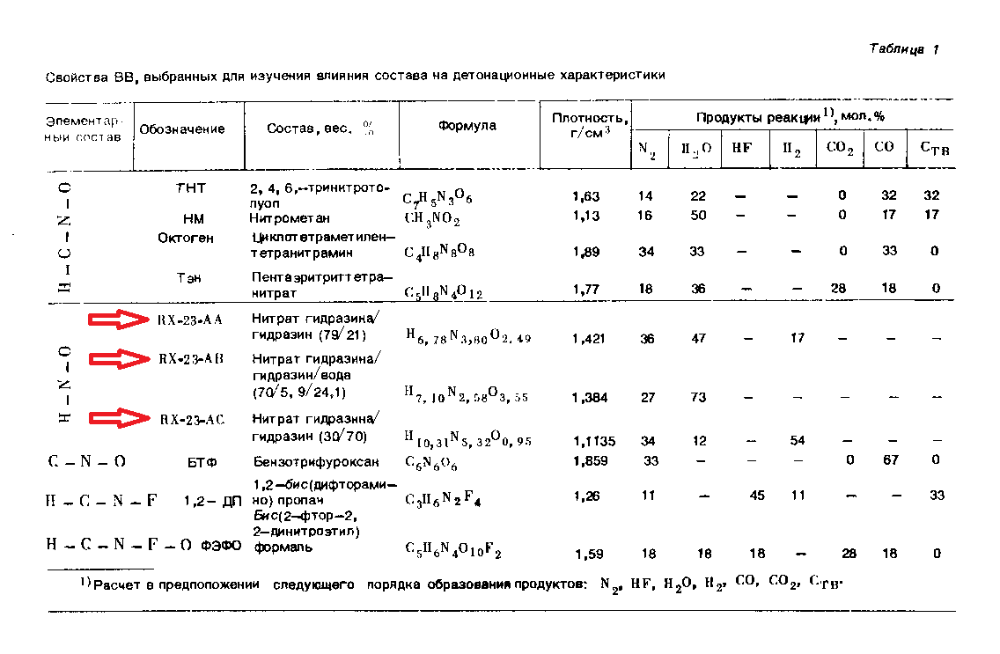 Но как бы то ни было, даже из этих данных видно, что скорость детонации в жидких системах может быть существенно выше 5000-6000 м/сек, в этом вы правы.