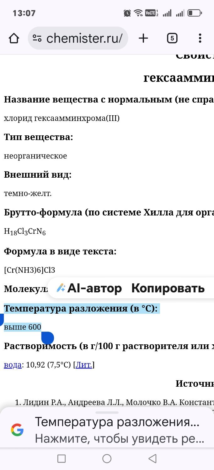 Cr(NH3)6]Cl3 Темп. разл 600°C