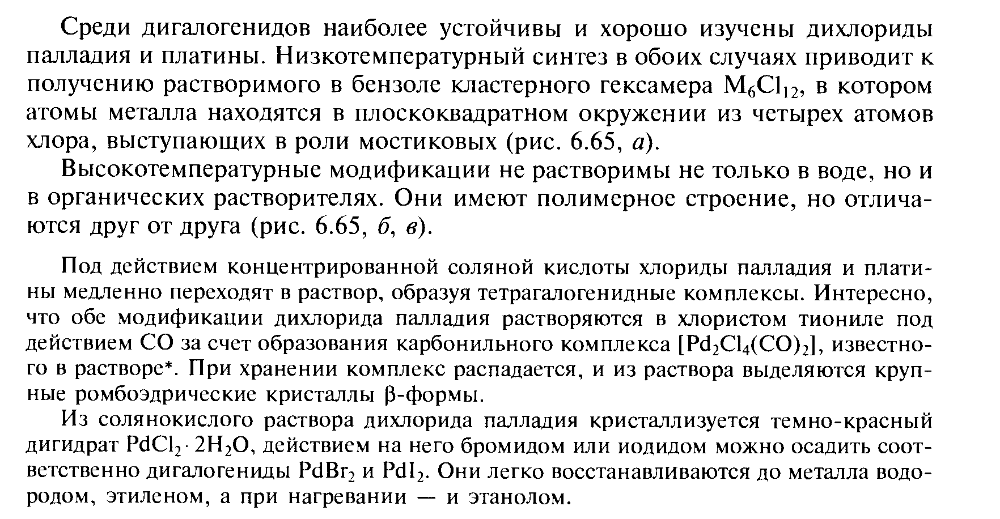 Погрузившись в талмуды Некрасова, Реми, Рипан-Четяну, Гринвуда, я пришёл к выводу, что никто из них не сомневается в растворимости хлорида палладия и не проводит границу между его безводной и гидратированной формами. И только Третьяков наводит на мысль, что безводный хлорид палладия дюже хреново растворим в воде, по крайней мере, его высокотемпературная модификация.
